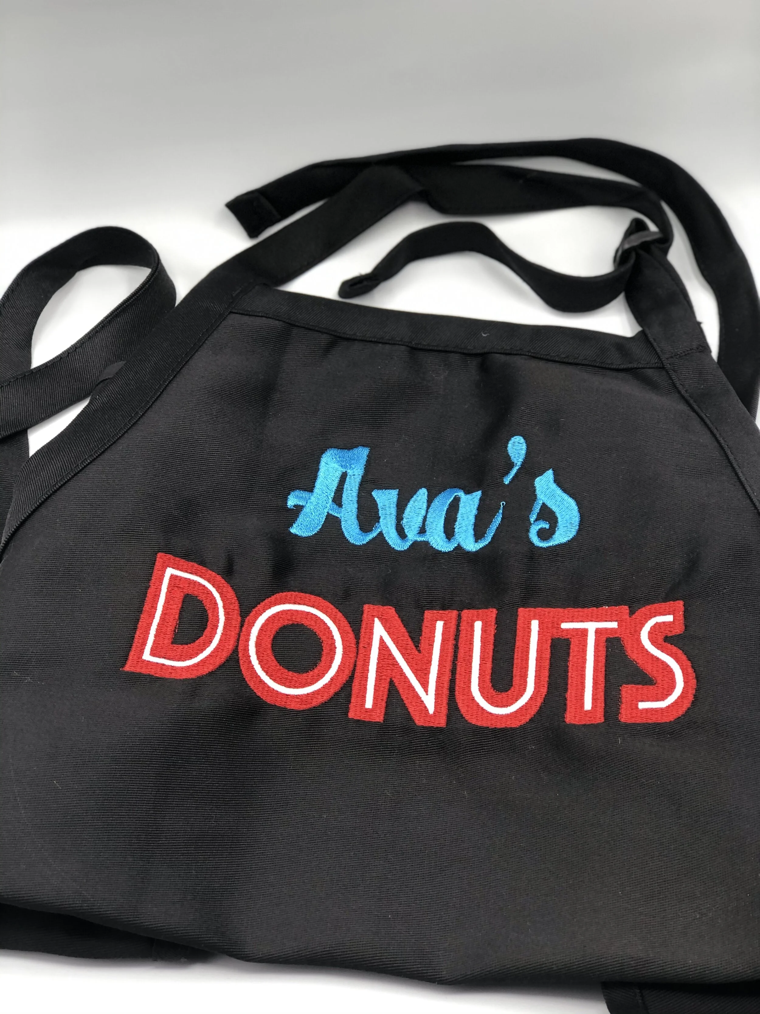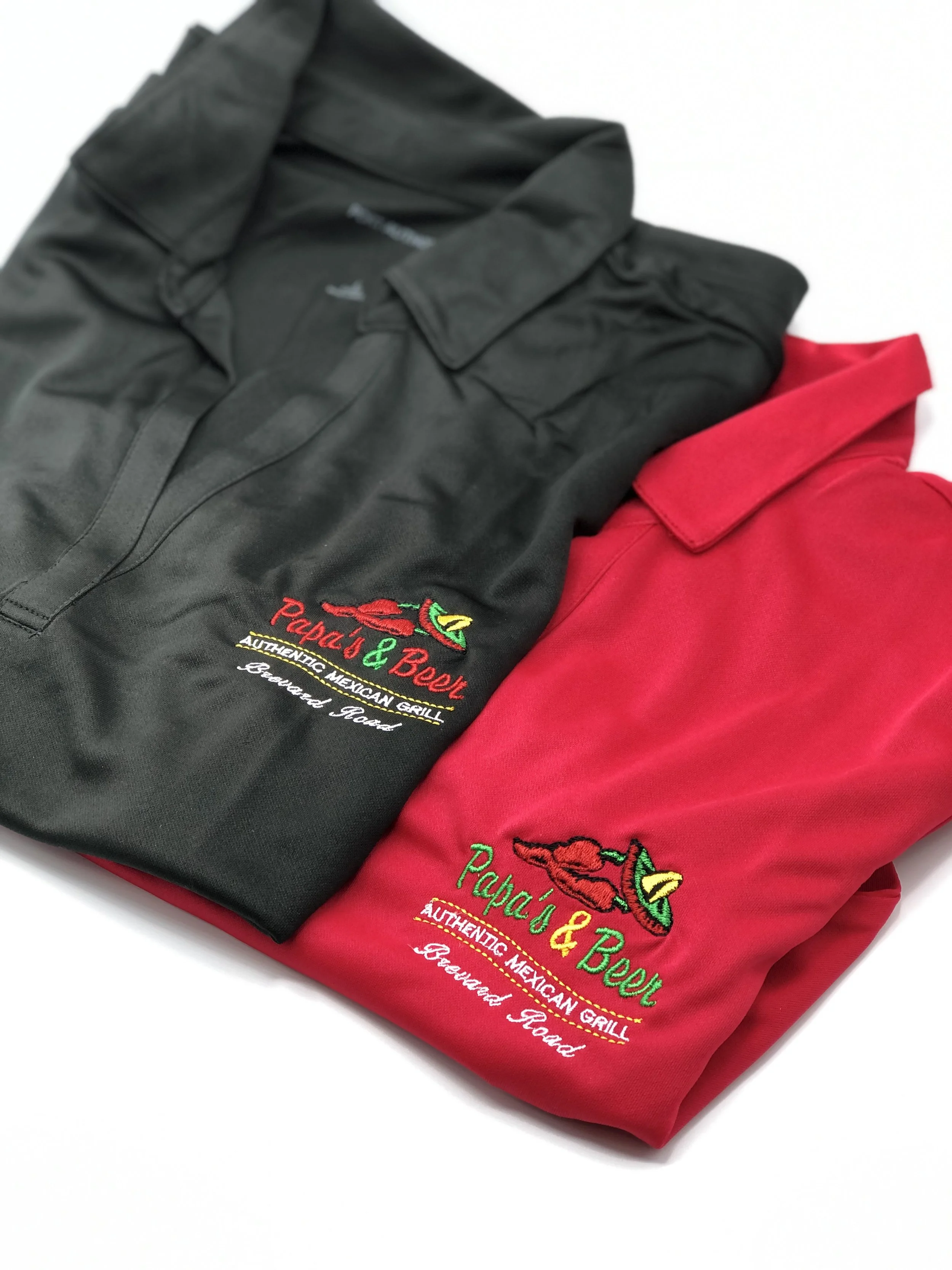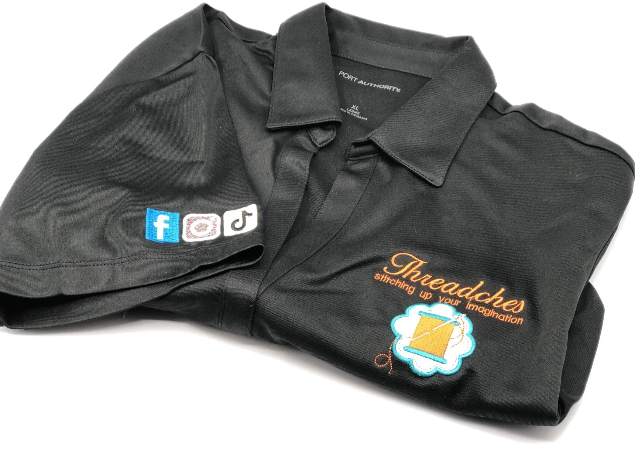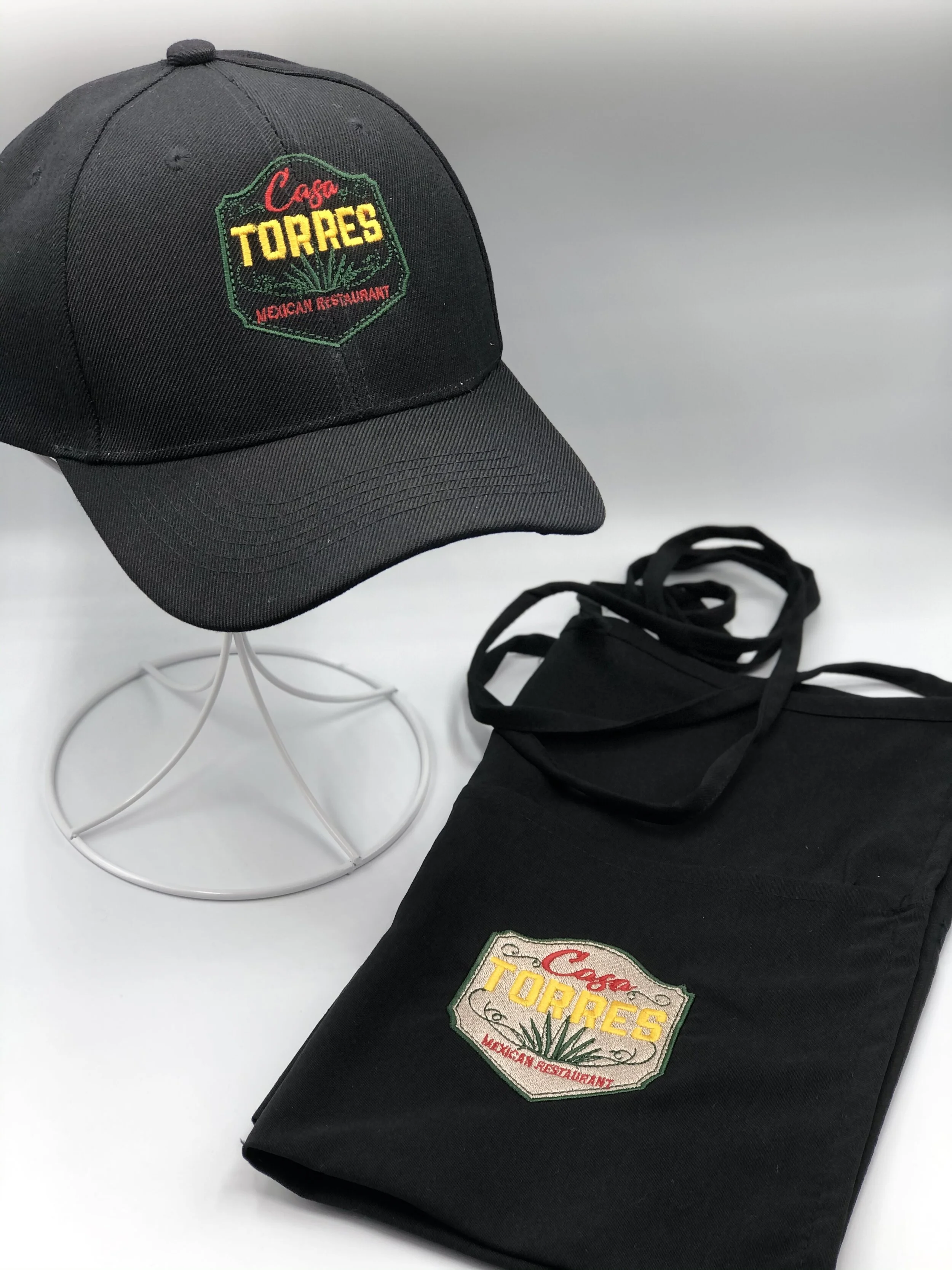 Some of our work: Hats, baby clothes, bandanas, aprons, tote bags, custom logos on polos, add-on on sleeves and more….